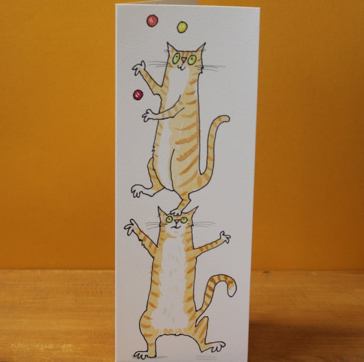 We all juggle cats from time to time . I found a few of these slimline cards and thought they were a nice size for cards that could then be reused as bookmarks.