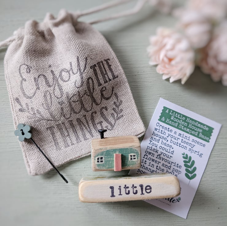A teeny wooden house scene that you can choose to personalise with your own decoration!
