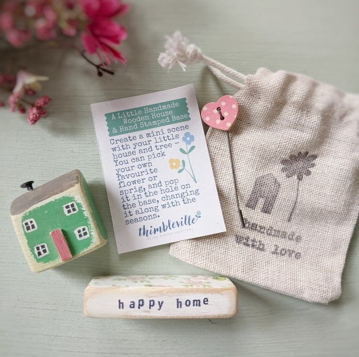 A teeny wooden house scene that you can choose to personalise with your own decoration!