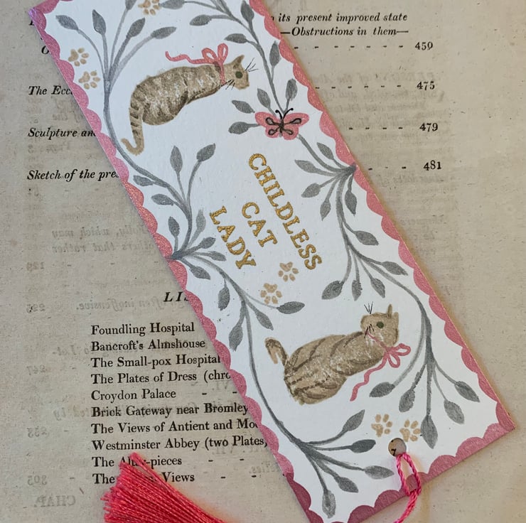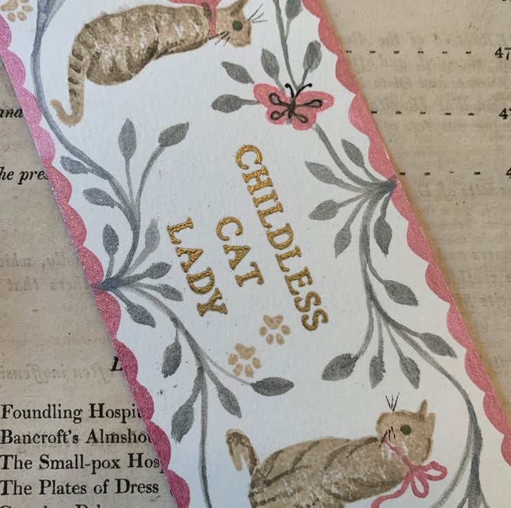 For all those out there who are proud Childless Cat Ladies, this is the bookmark for you. In a colour scheme inspired by the Lover album by Taylor Swift-who is undoubtedly Empress of all Childless Cat Ladies-this bookmark has two prettily embossed and handpainted cats at its heart.