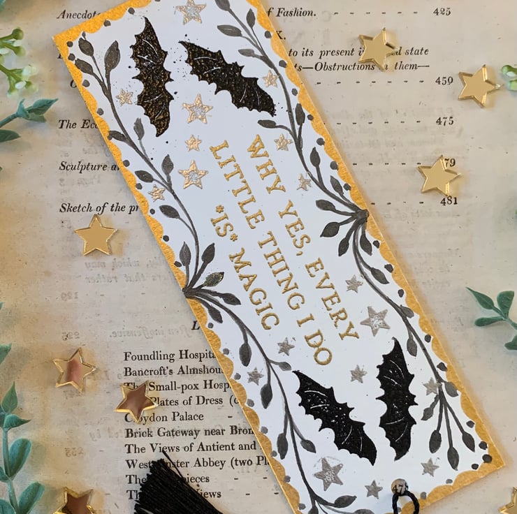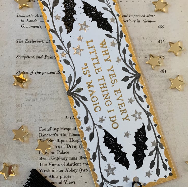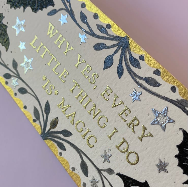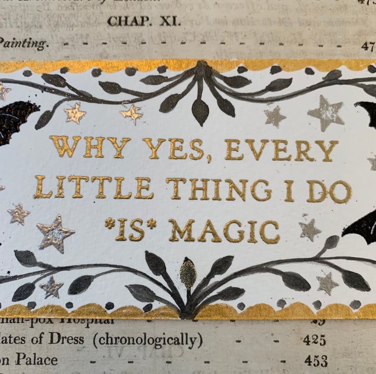 Why, yes, if you are asking Sir, everything I do IS magic.....This is a sort of Halloween bookmark, but also a bit of a feminist statement. We don't really need any man to tell us how magical we are, do we Ladies?
