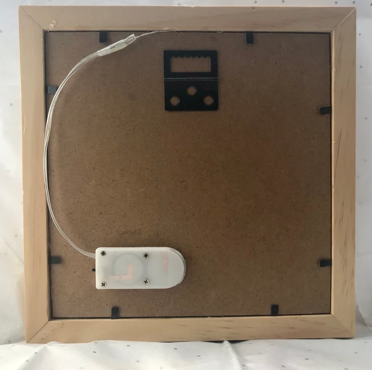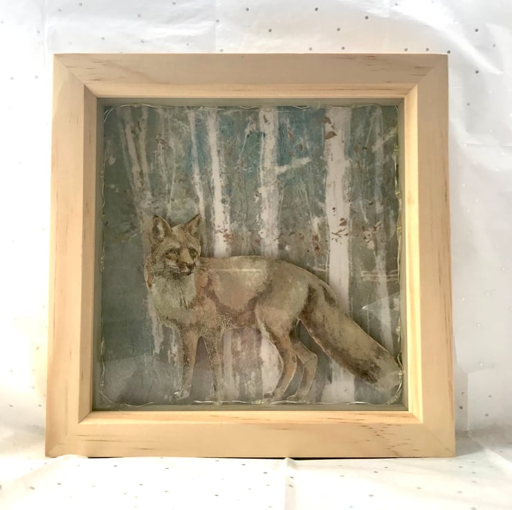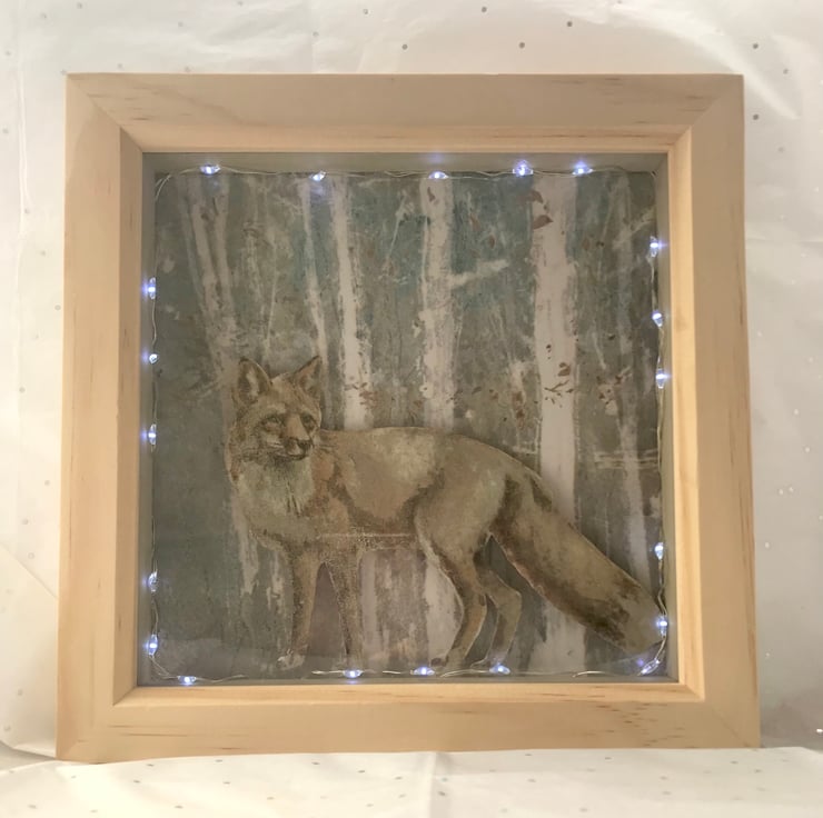 A lovely 3D shimmery Fox image in a shadow box frame with a background of LED lights, which look beautiful in a darkened room.
