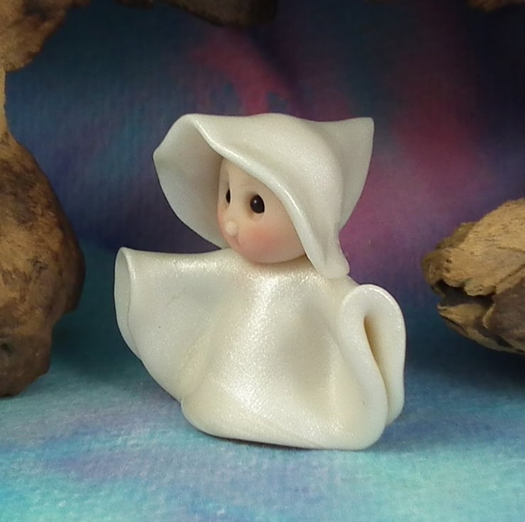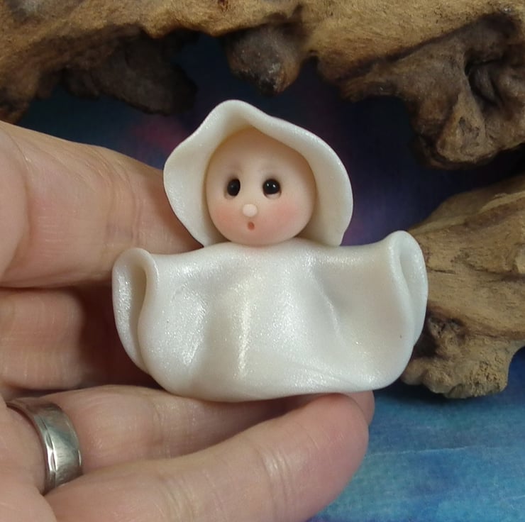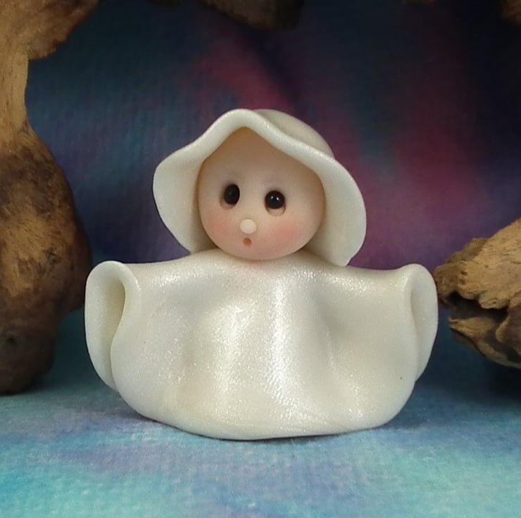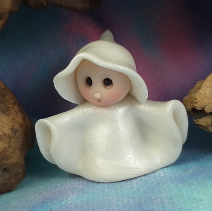 This is a 'one of a kind' creation having been entirely handmade without the use of moulds here at my studio on the Sussex Coast. Modelled with polymers, painted with heat set paints before sealing with lacquer. Ghost Gnome is just one and a half inches tall.