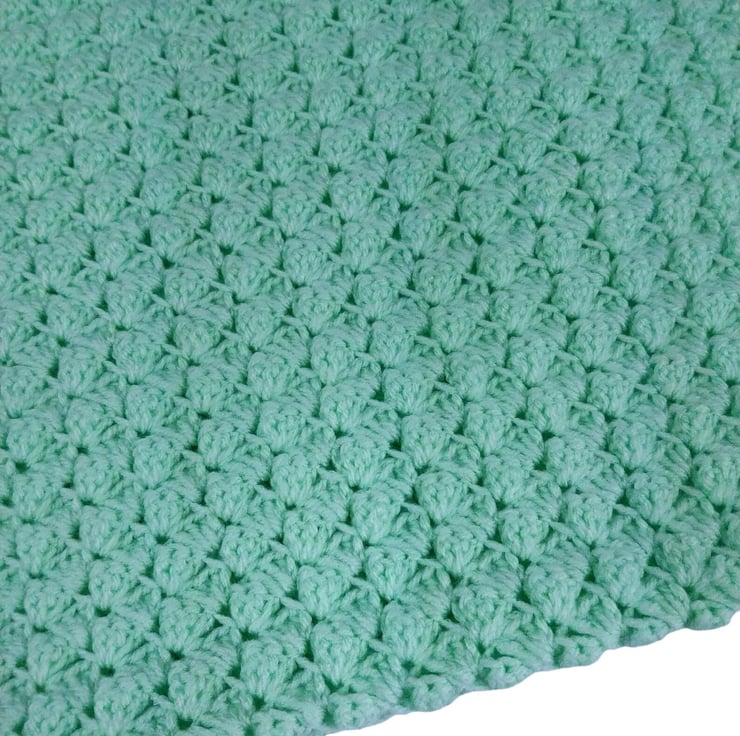Wrap your little one in this super cute hand-crocheted baby blanket in a lovely spring green shade. Made from soft yarn with a delightful bubble-like texture, it brings both warmth and a touch of style. Perfect for cosy naps or on-the-go adventures, it’s as practical as it is adorable. Its compact size makes it great for strollers, cribs, or even as a special keepsake.