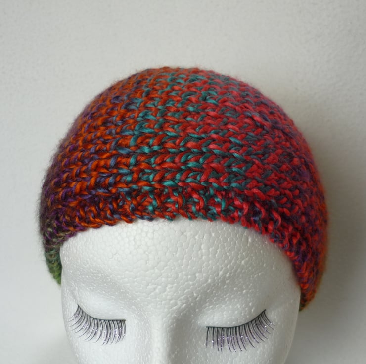 This garment is knitted in a CHUNKY multicoloured yarn. Very bright and cheerful!!