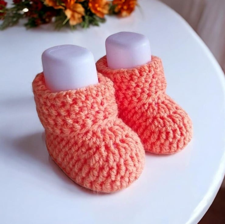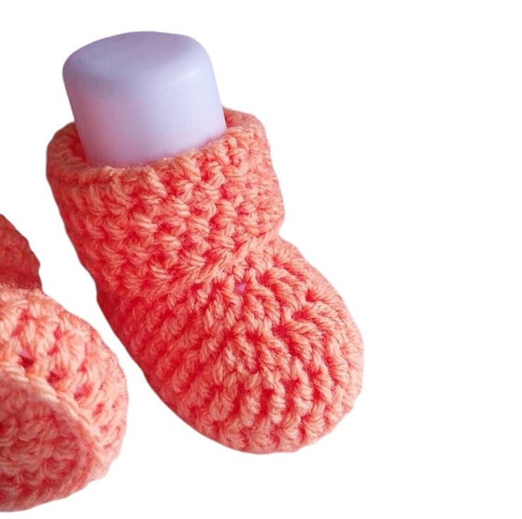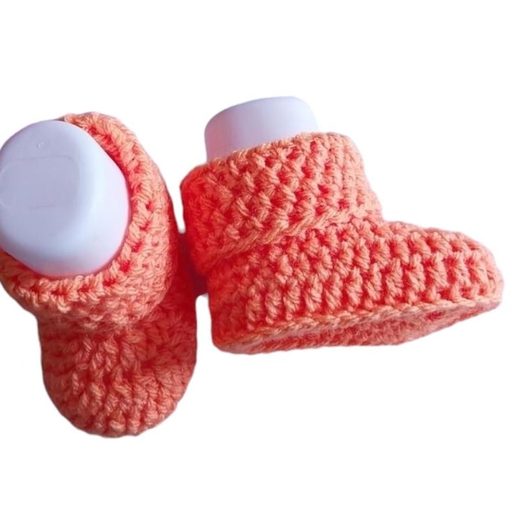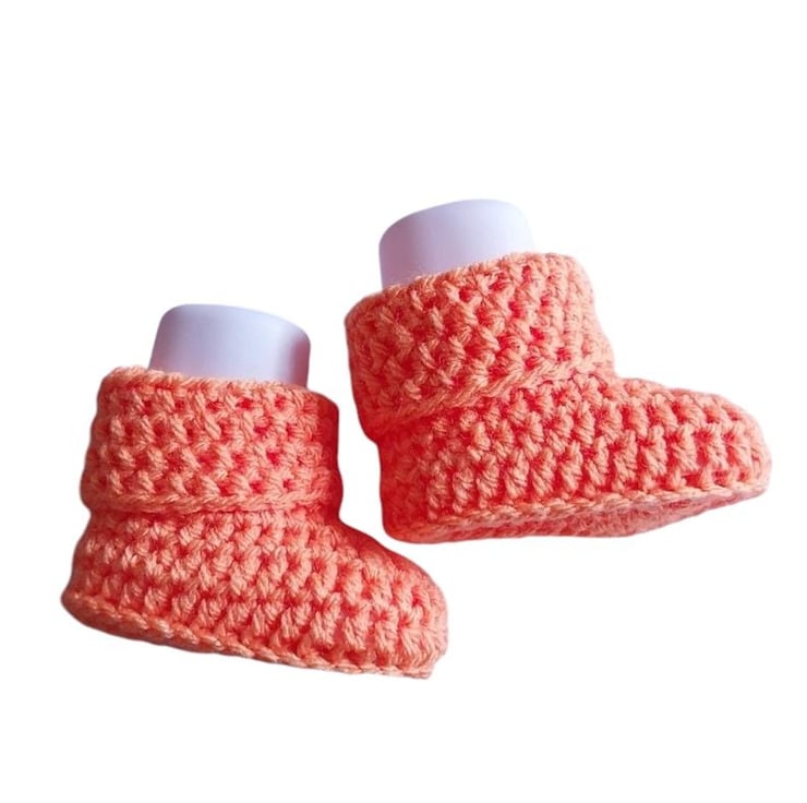 Each pair is carefully handmade, making them a thoughtful choice for baby showers, newborn gifts, or everyday wear. The bright orange colour adds a fun pop of personality while being suitable for both boys and girls.
