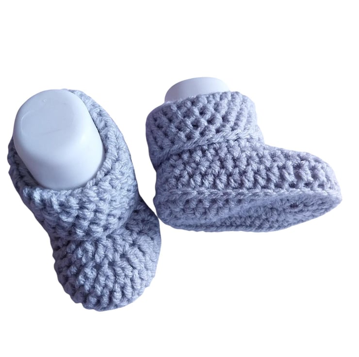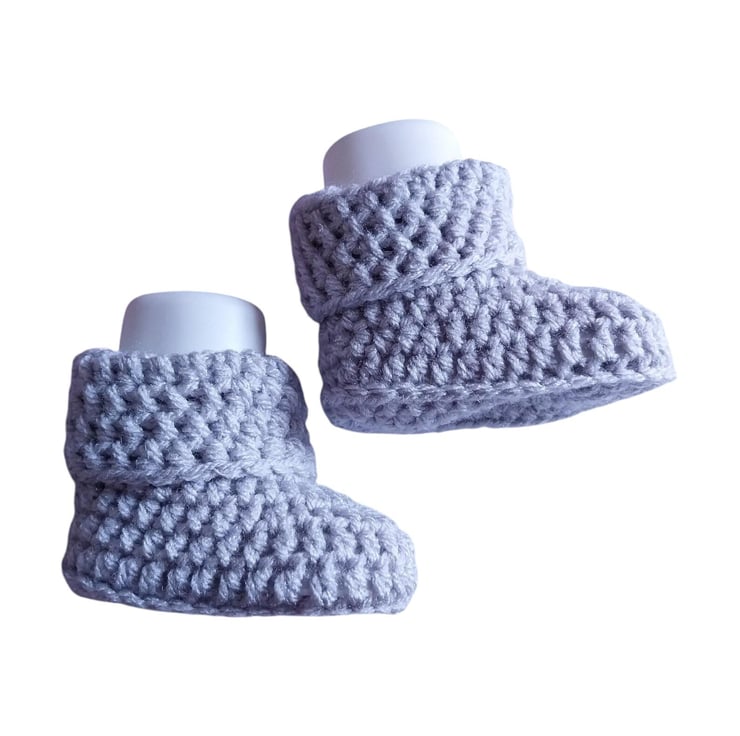 Keep your little one’s toes snug and warm with these super cute silver grey crocheted baby booties! Handmade with love, they're perfect for babies aged 0-3 months. The soft, cosy fit ensures comfort, while the adorable design adds a sweet touch to any outfit.