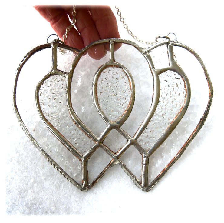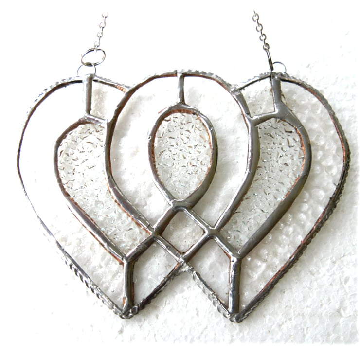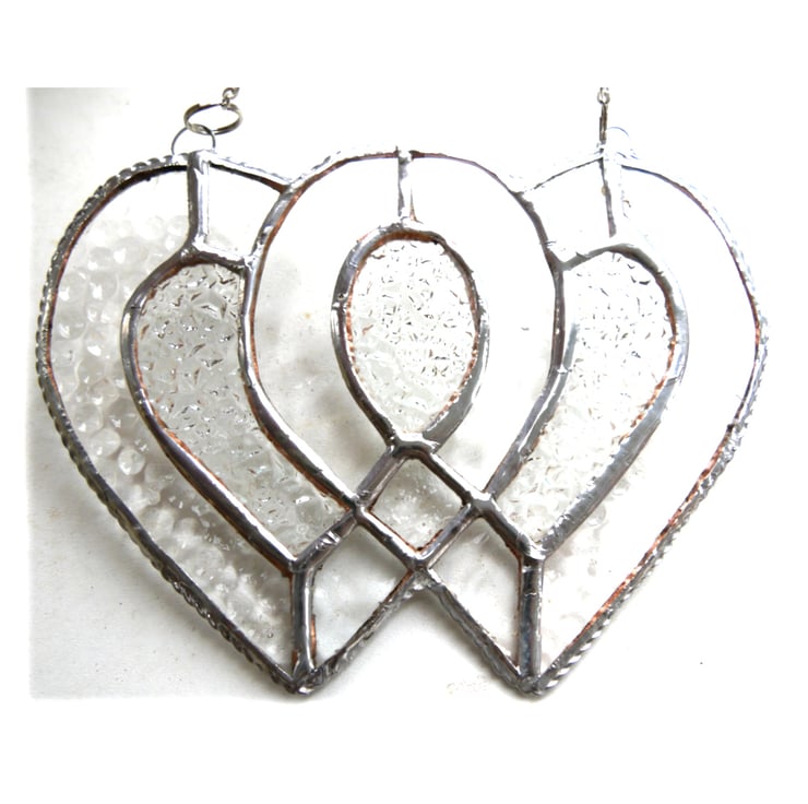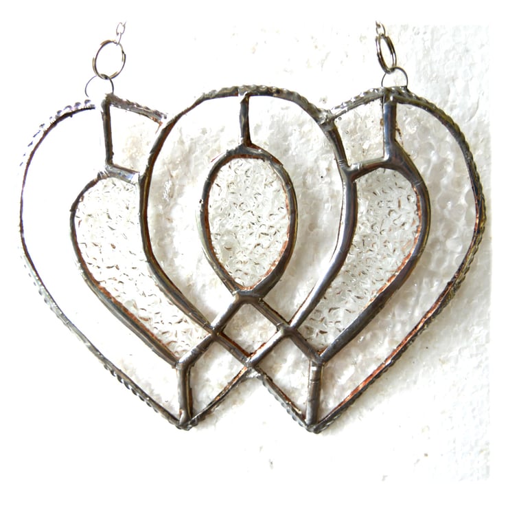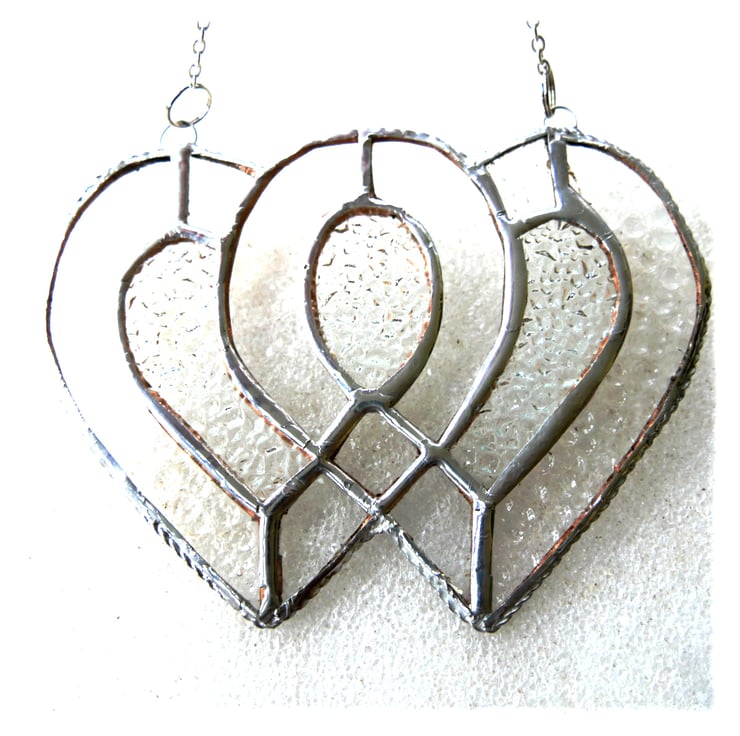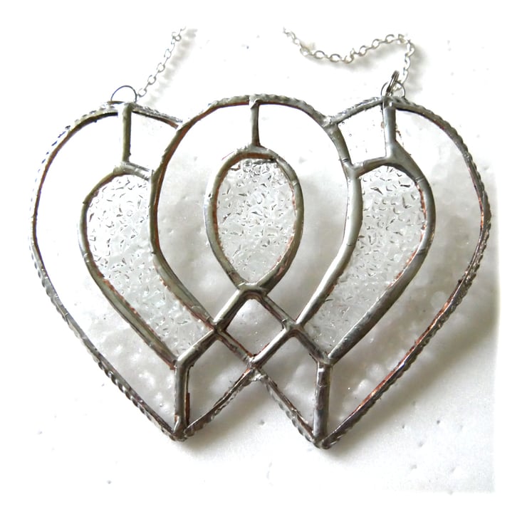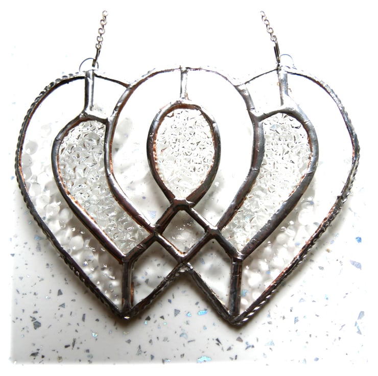 I've used iridised clear cut glass for the 2 hearts to give lots of sparkle and infilled with some rather prettily textured diamond cut clear glass.