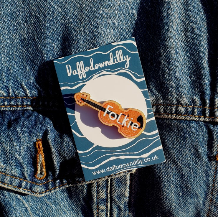 I illustrated this Folkie violin pin and it has been printed on to wood and laser cut for me by a lovely small business in Gloucestershire.