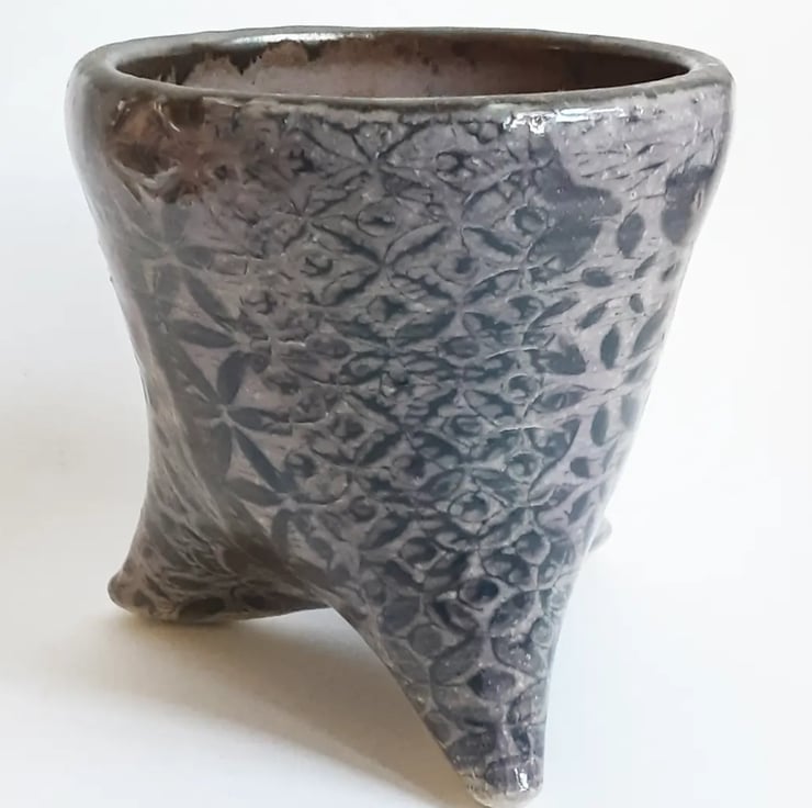 This is a handmade wheel thrown Ceramic Plant Pot Holder.