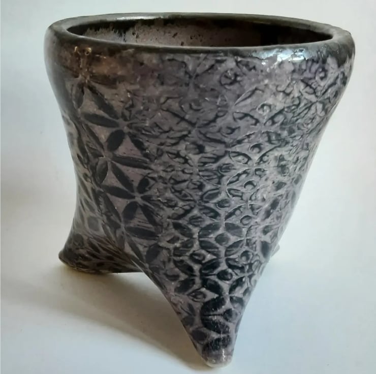 Measurements approximately 9.5 cms x 9 cms and 8 cms diameter around the rim
