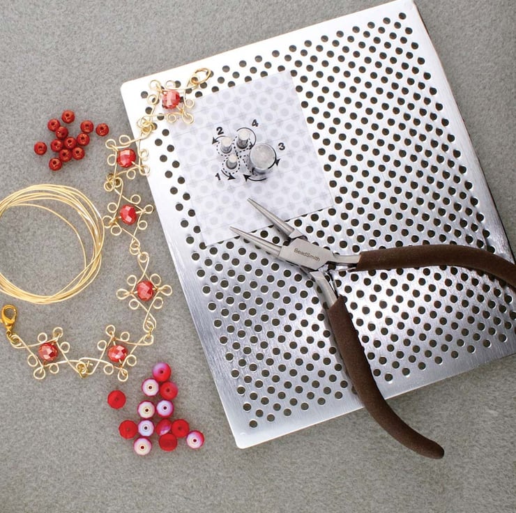 Create wire designs for jewellery, paper arts and home decor. Create your own patterns. Great for making jewellery components. Just wrap your wire around the pegs.