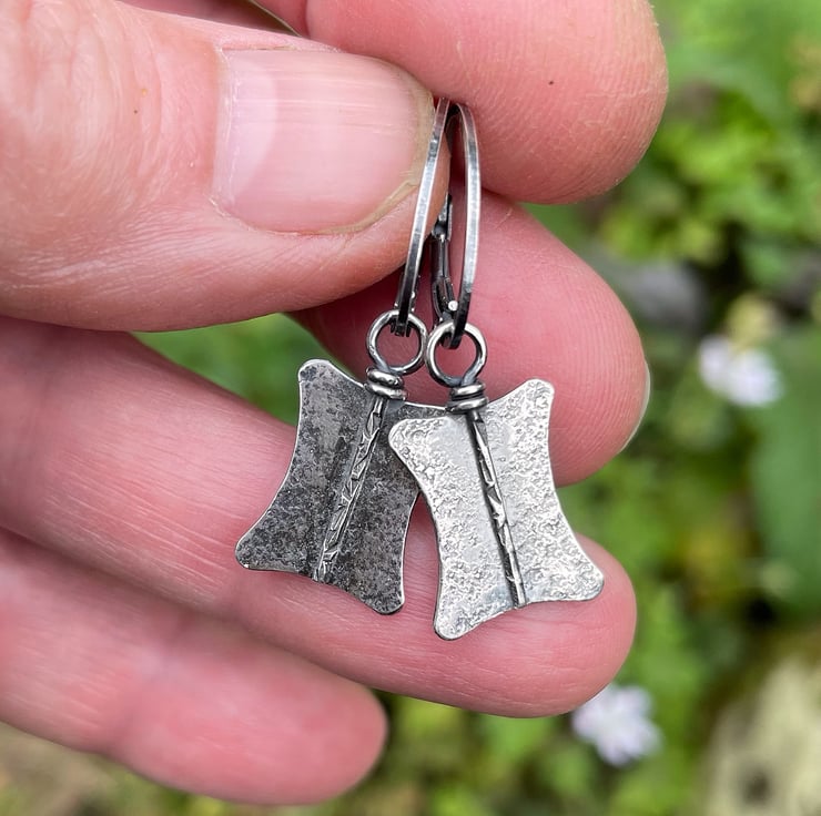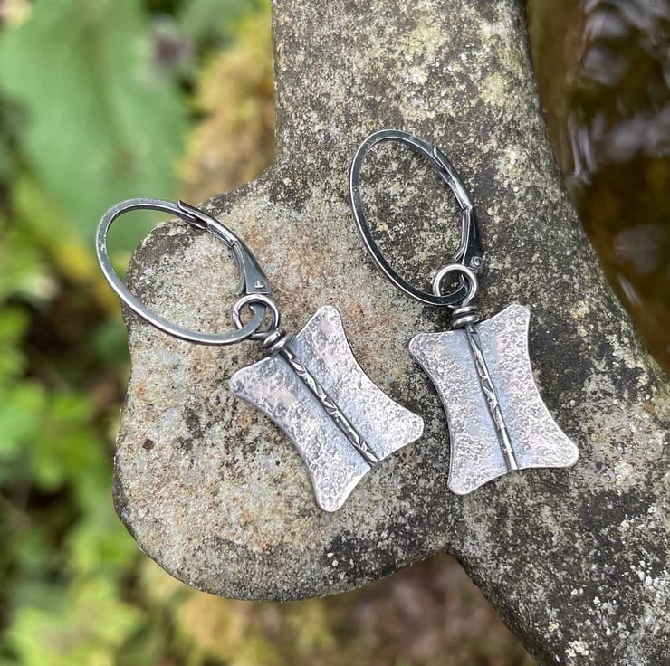 These earrings are about 12mm at their widest and hang 3.5cm on lever back hoops. You can have them on handmade hooks if preferred, just leave me a note at checkout.