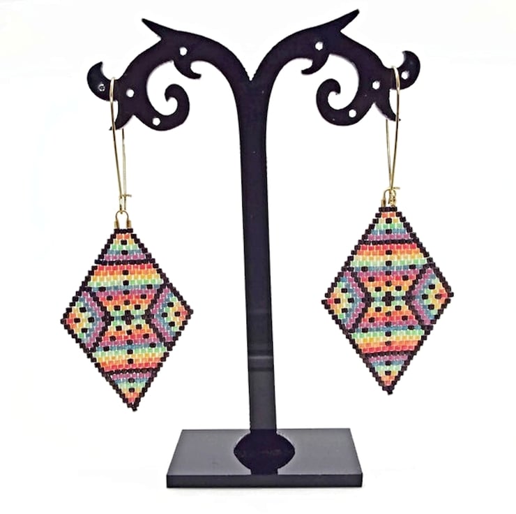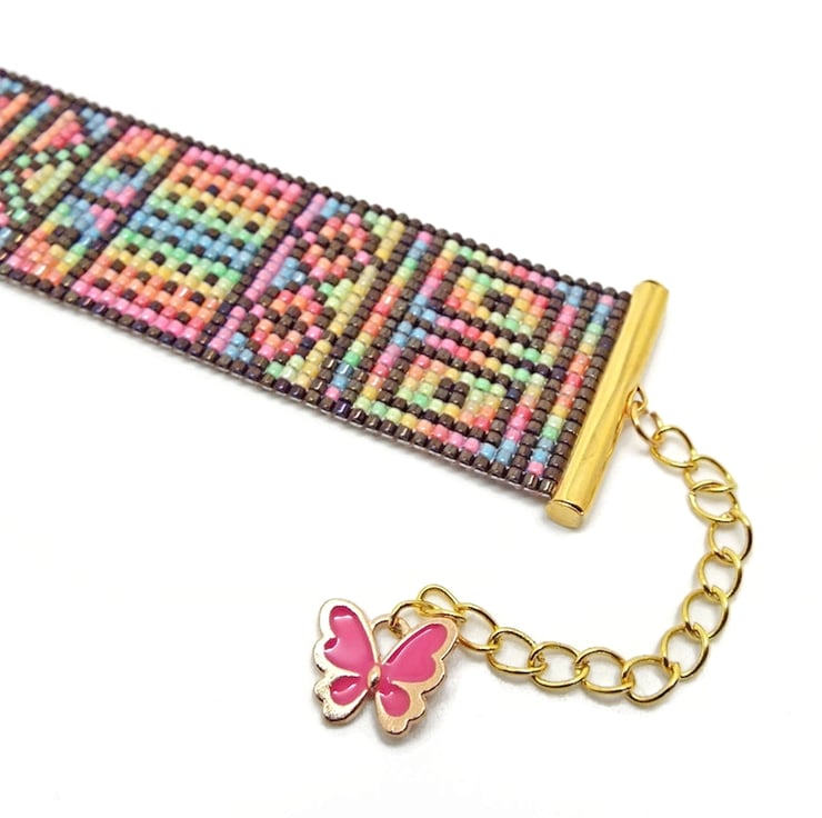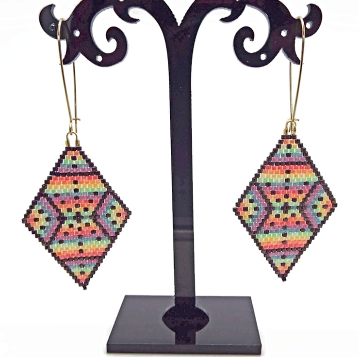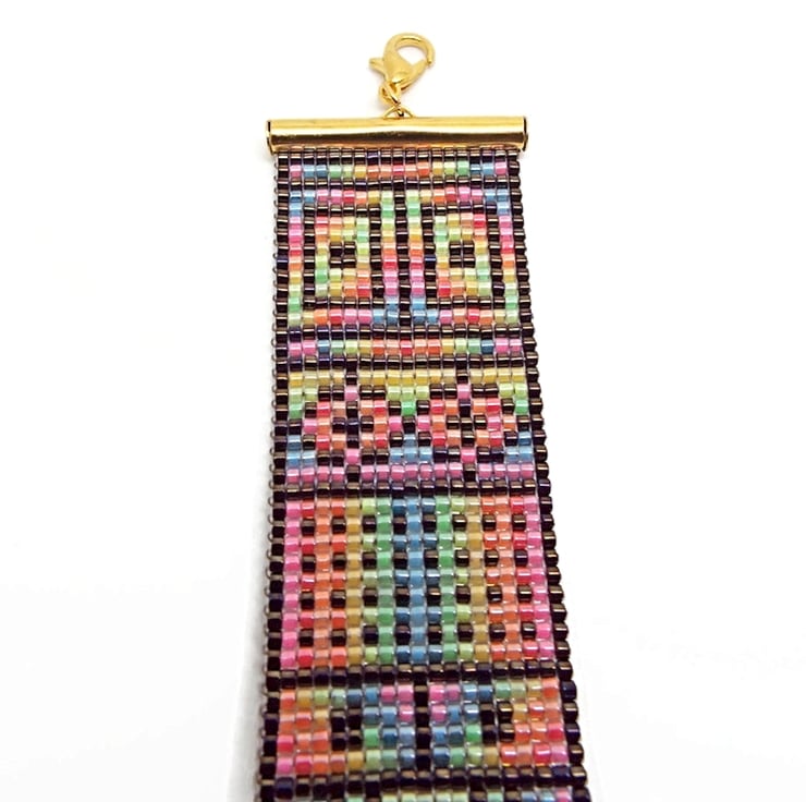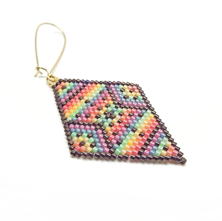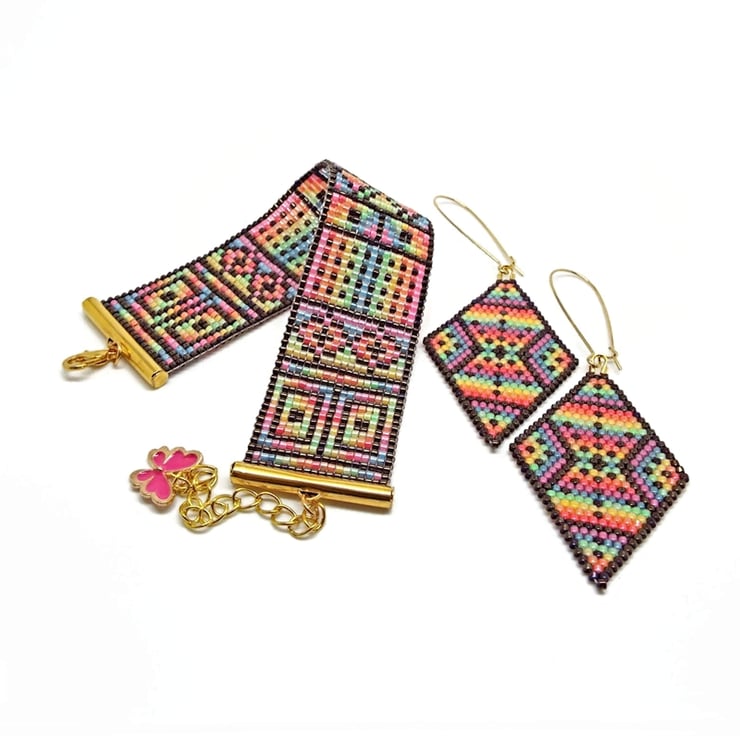The Bracelet in this set was hand loomed and the Earrings were brick stitched by hand. This set was 100% designed and made by me and is one of a kind. All findings are gold plated. Miyuki Delica beads are top quality Japanese cylinder shaped beads.