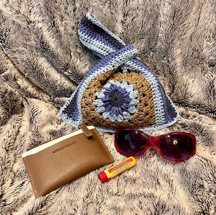 Introducing my exquisite and uniques crocheted Japanese Knot bag in a Starburst pattern, meticulously crafted with a hand-stitched fabric lining.