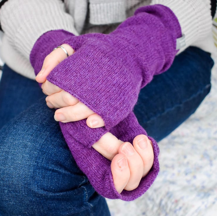 Beautifully soft British spun merino lambswool fingerless mittens will keep your hands warm and fingers free to carry out your tasks. Tuck or ruched under your coat or garment sleeves.