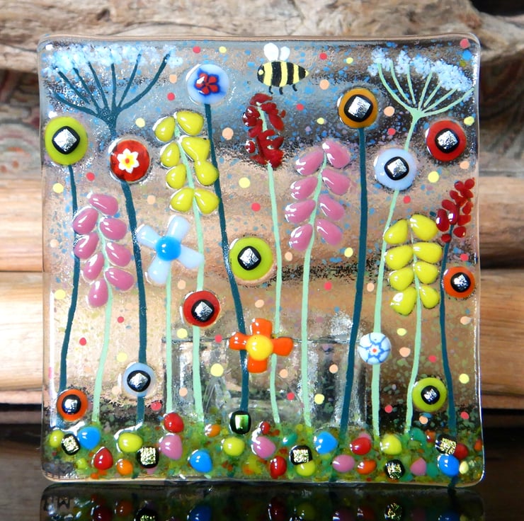 Handmade fused glass 'Bumble Bee' T-light holder.