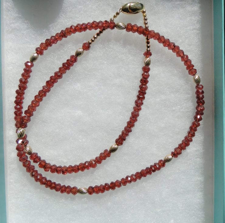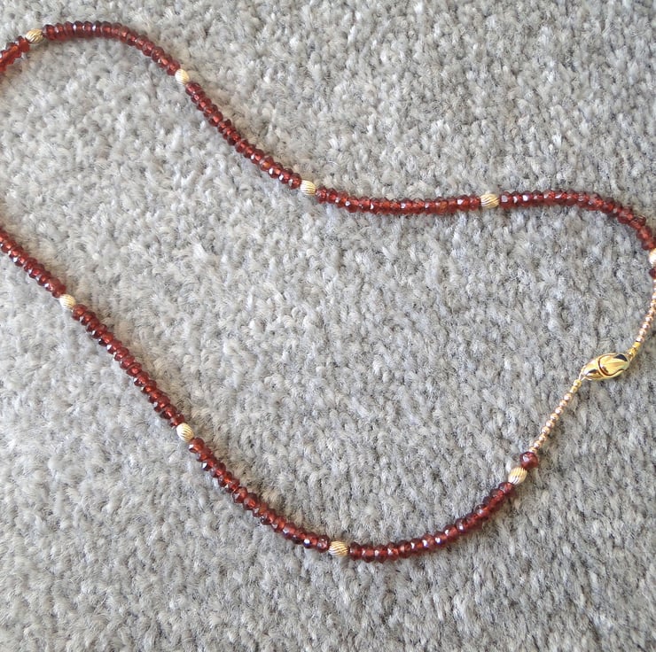 A beautiful Red Garnet Necklace with 9ct gold fill highlights and a magnetic clasp.