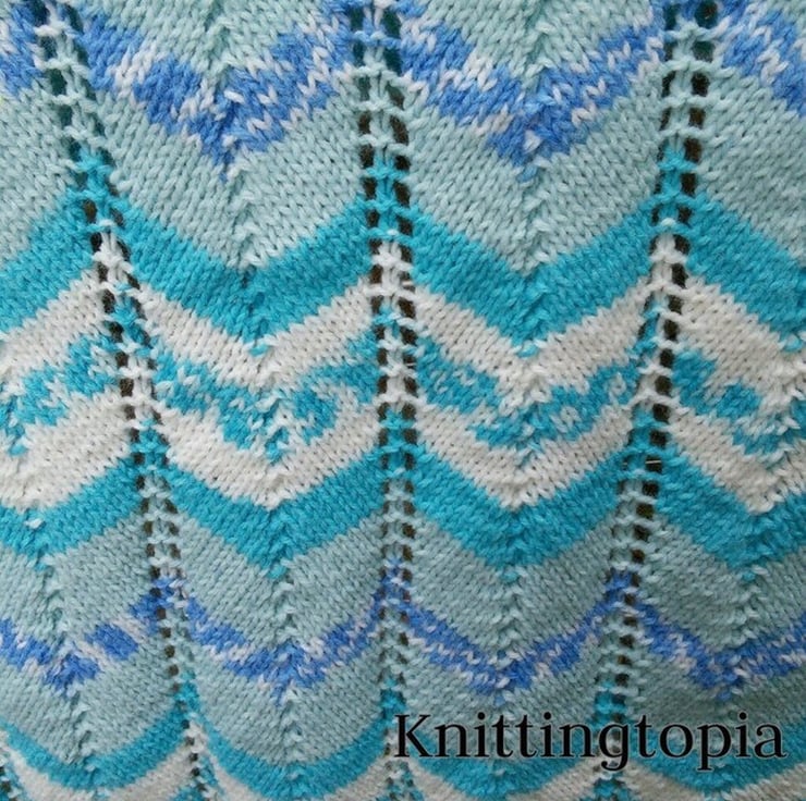 The chevron pattern not only looks great but also gives it a cosy texture, perfect for keeping your little one warm during naps or strolls. The self-patterning yarn adds a unique and eye-catching design, making each blanket one-of-a-kind.
