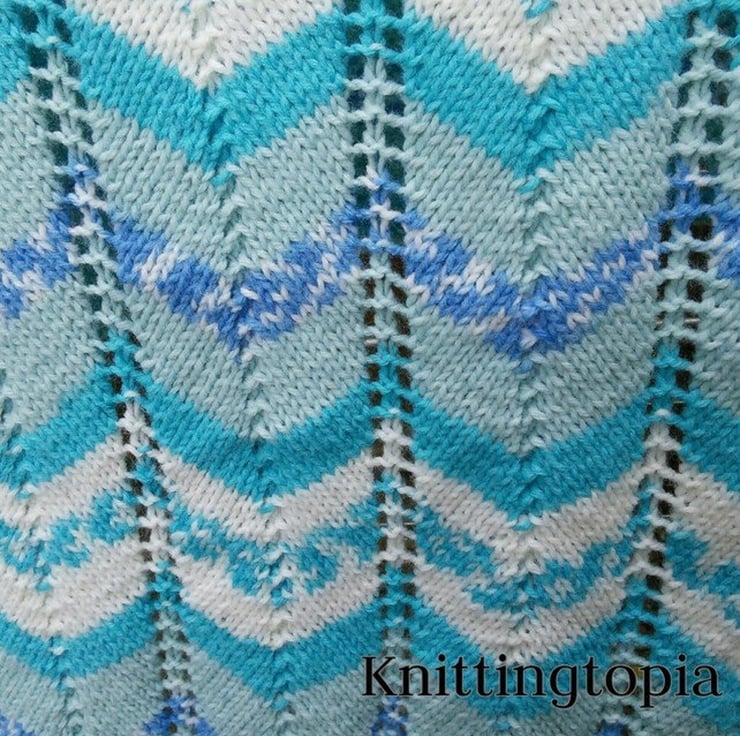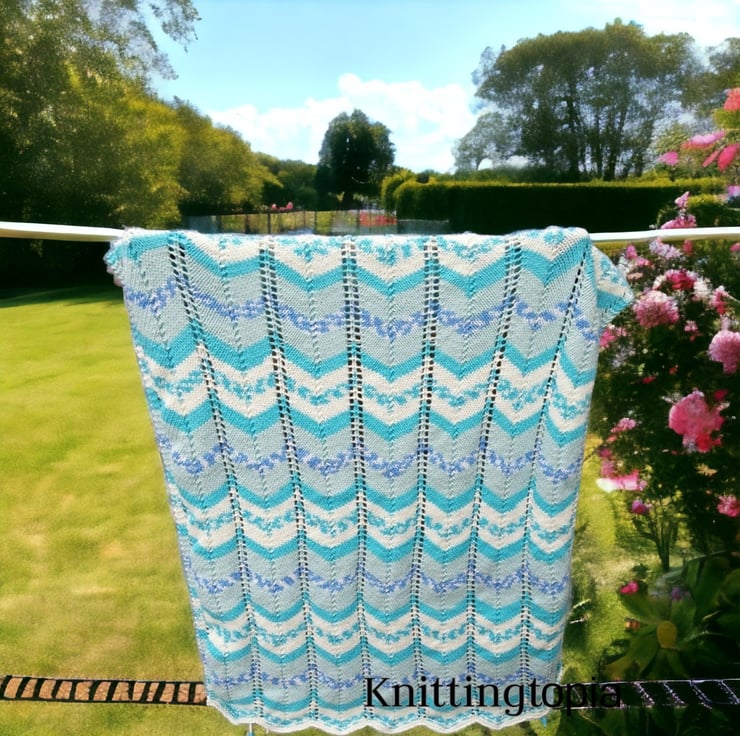 The chevron pattern not only looks great but also gives it a cosy texture, perfect for keeping your little one warm during naps or strolls. The self-patterning yarn adds a unique and eye-catching design, making each blanket one-of-a-kind.