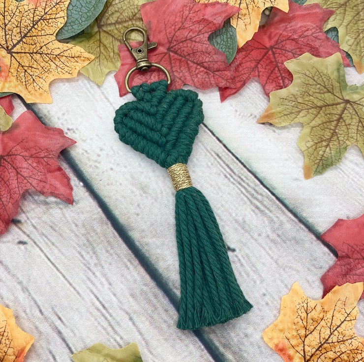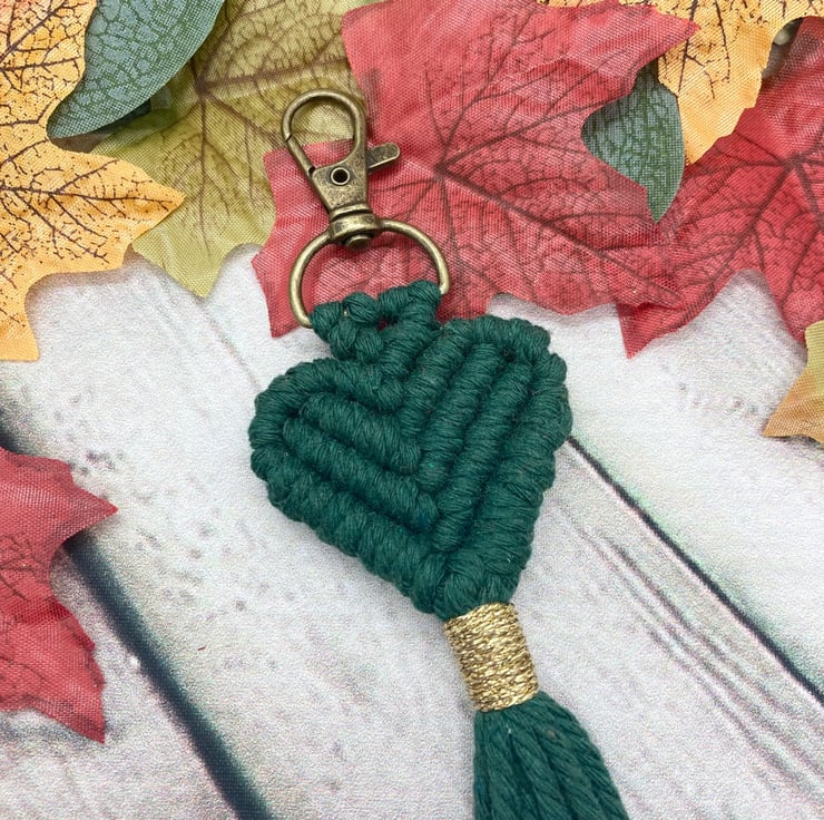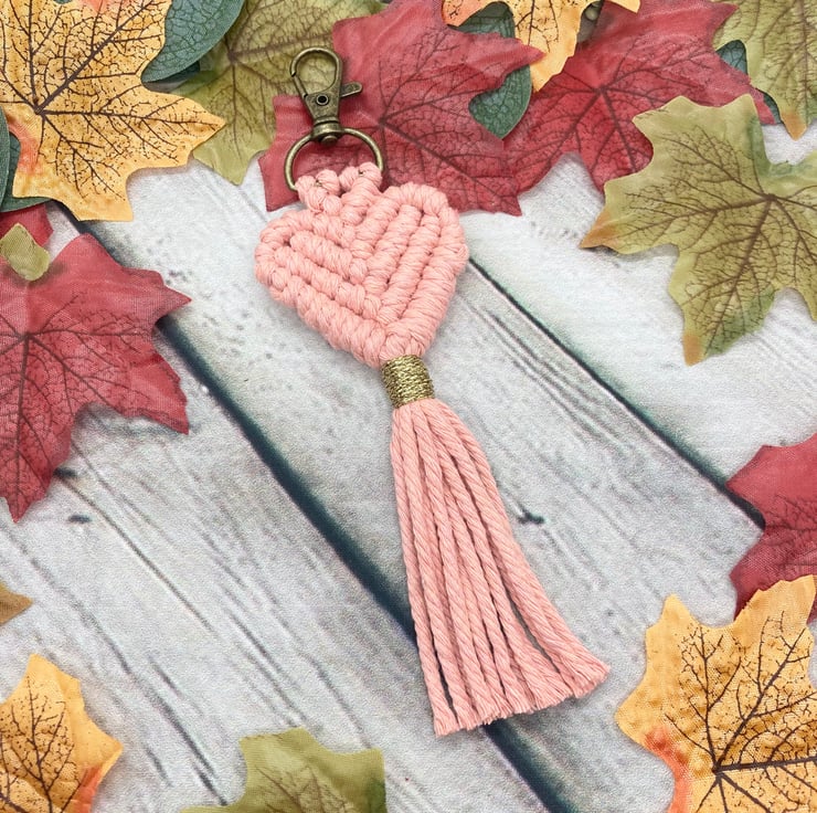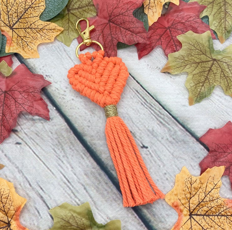 Macrame Love Heart Keyring - Handmade macrame keyring - Autumn Colours