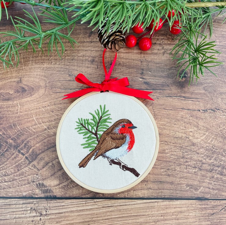 This Beautiful Machine Embroidered Robin Hoop would make a lovely gift for bird lovers.