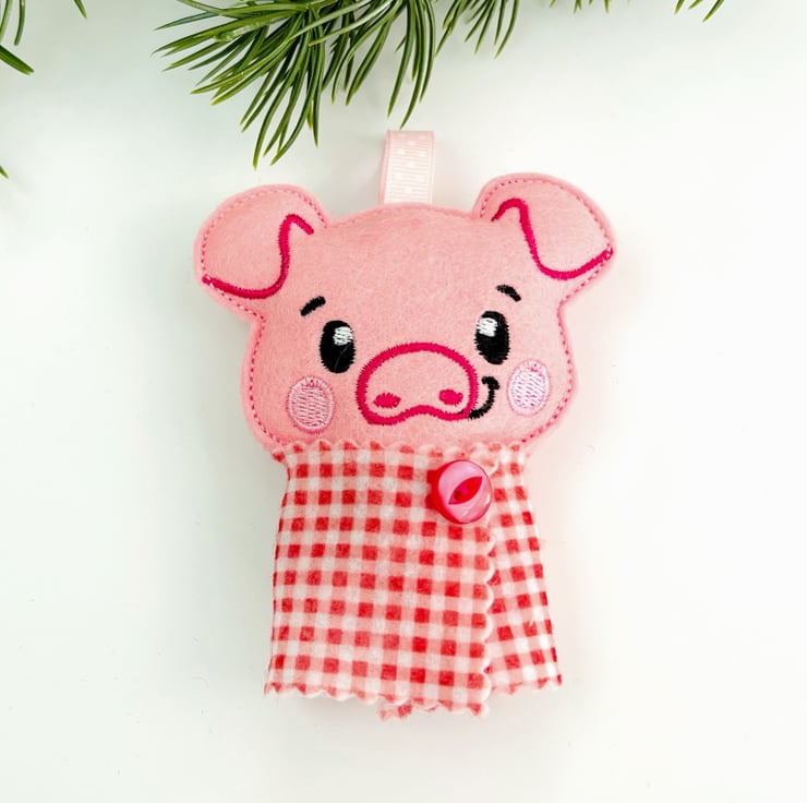This cute little piggy all wrapped in its blanket is such a fun decoration to hang on your tree.