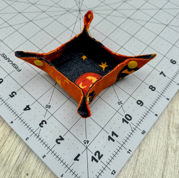 This quilted box is perfect for holding a few treats ready for Halloween, or for use all year round as handy storage!