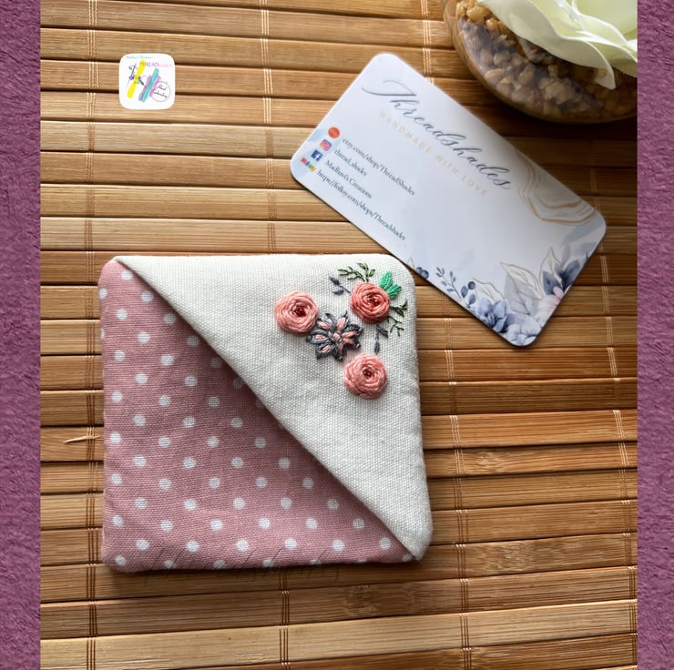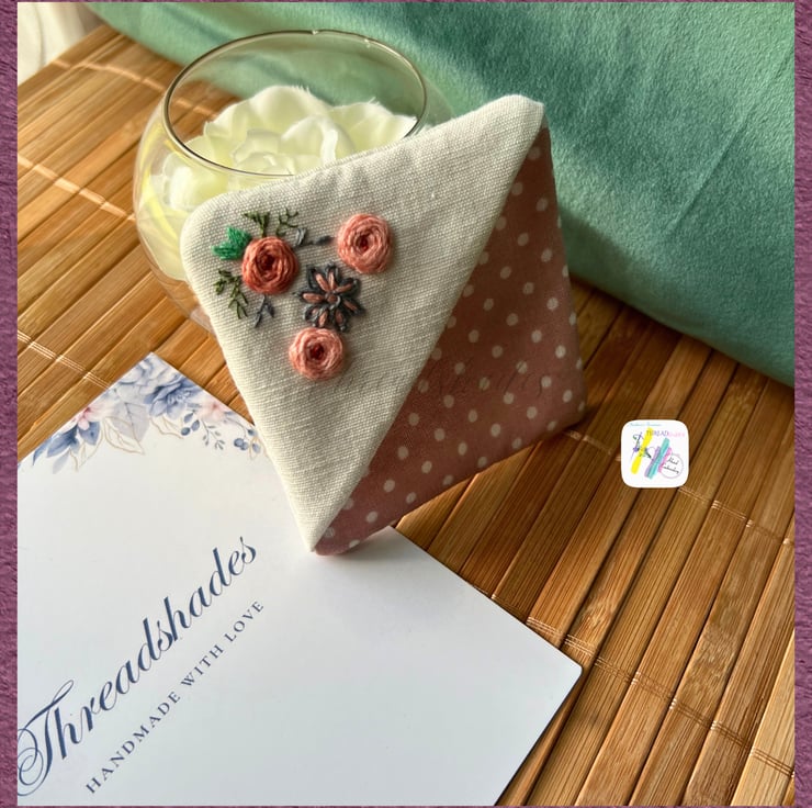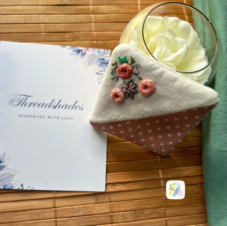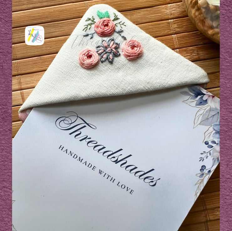 Description:- Very beautiful handmade bookmark, rose flower embroidery is done with fine needlework, using different stitches and DMC threads, fine quality fabric is used . Used printed fabric and plain fabric . Ideal for gifting your book lover friend or family member.