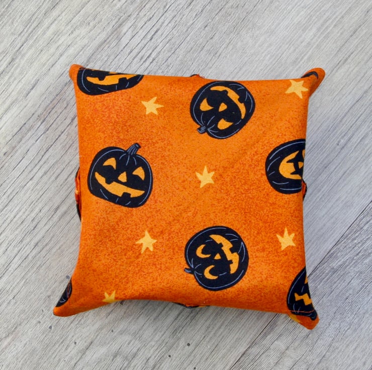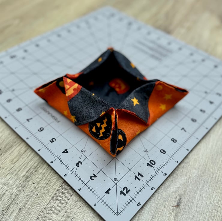 This quilted box is perfect for storing some halloween treats or for other storage any time of year!
