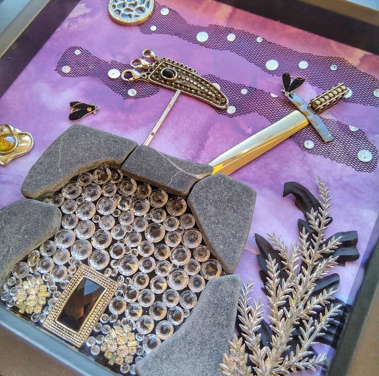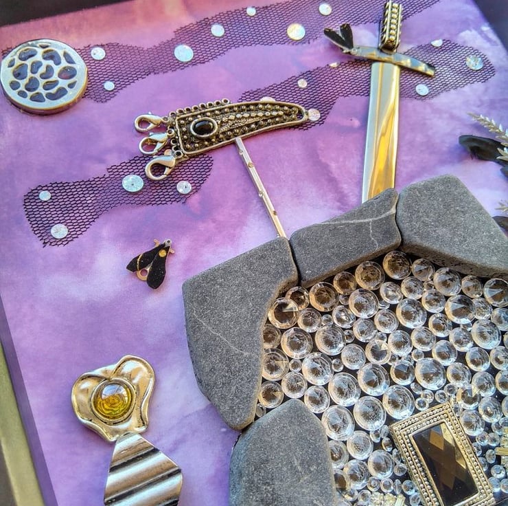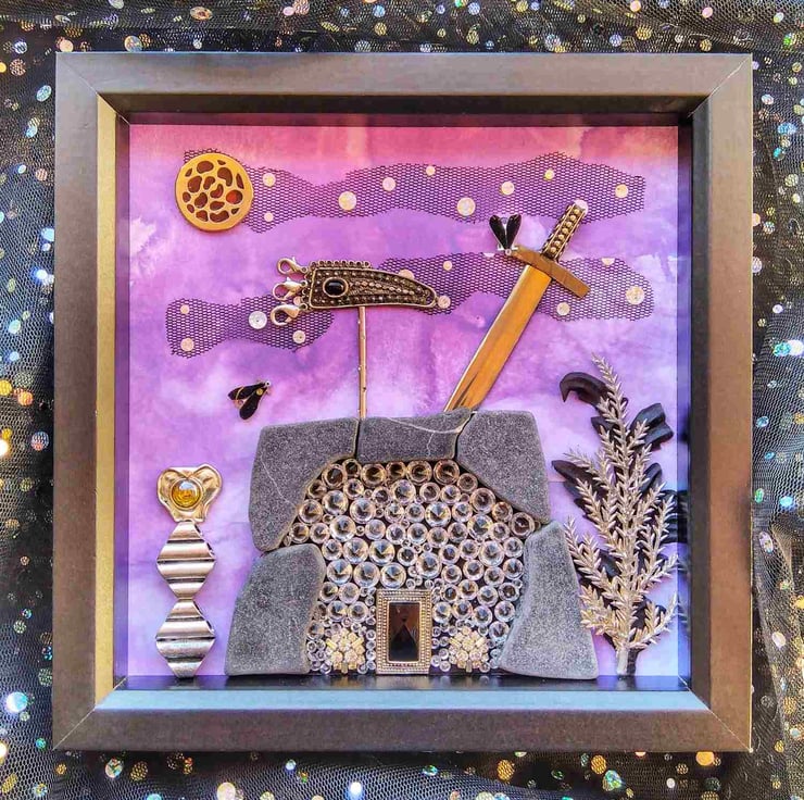 This mixed media box frame conjures something of the magic and mystery of the legend of King Arthur.
