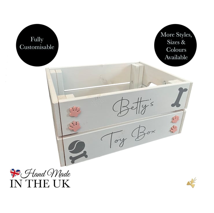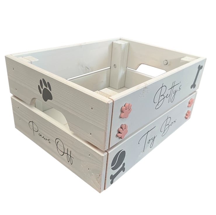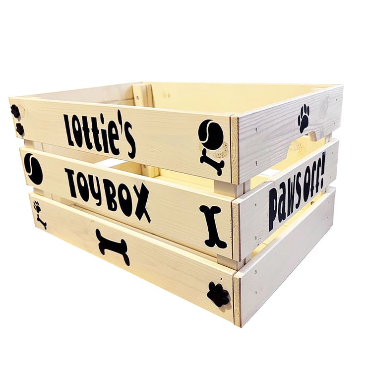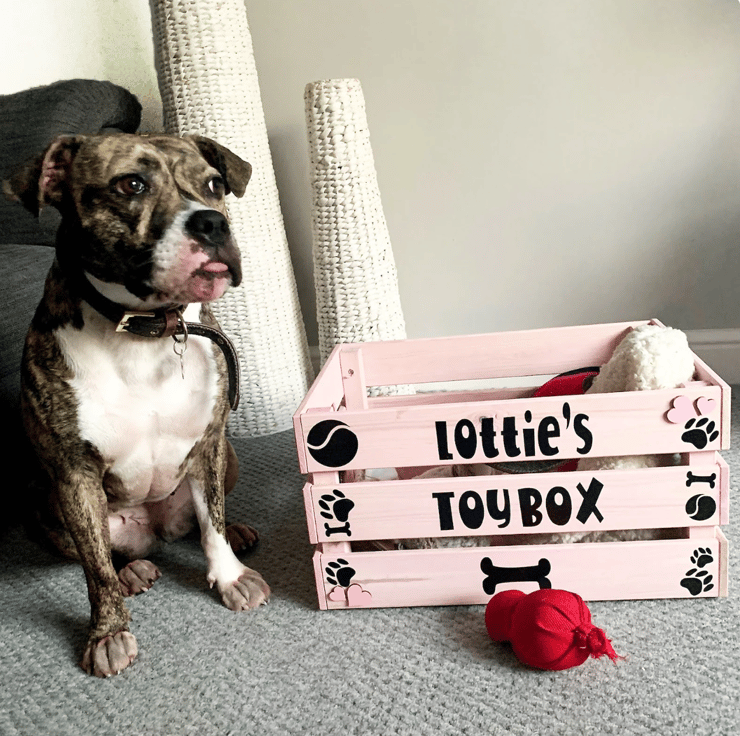 This personalised crate is the perfect way to organise your dog’s toys while adding a stylish touch to your home!