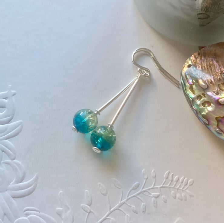 Beautiful handmade long drop Amber earrings featuring 10mm Blue Sapphire Amber rounds and 925 sterling silver tubes. I have finished the earrings with sterling silver shepherd hooks. Gorgeous earrings that have lots of movement and are so light to wear.