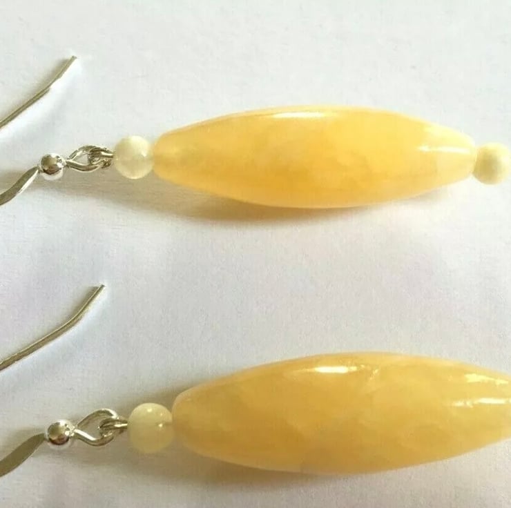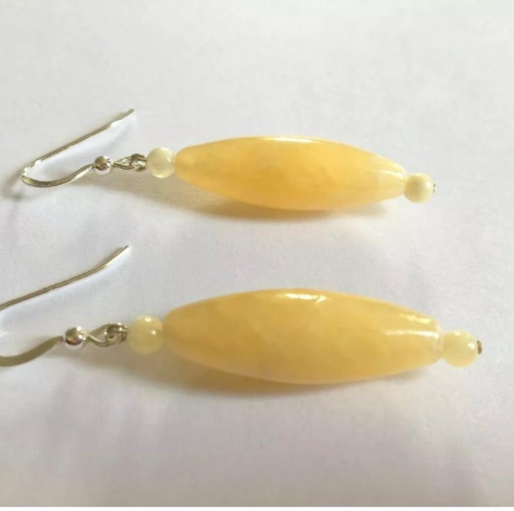 Hand Crafted Dangle Earrings with 9.25 Sterling Silver Shepherd Hooks and Honey Quartz Rice shaped beads approx. 29 x 9mm