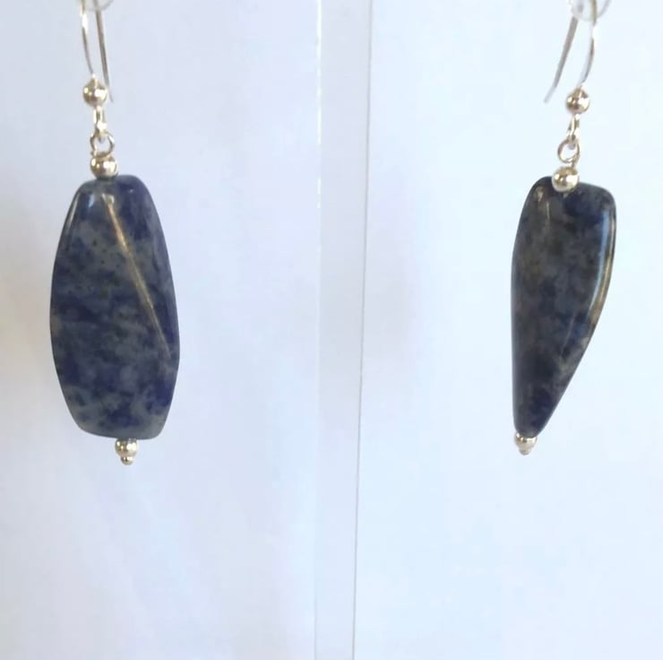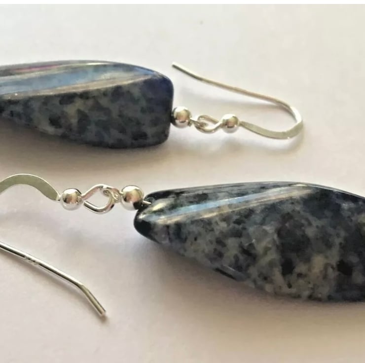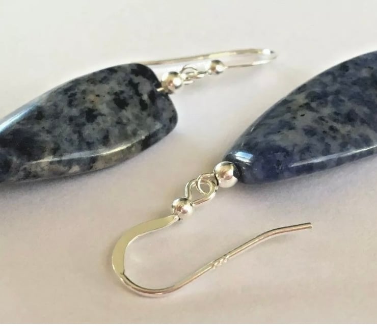 Created using quality 9.25 Sterling Silver Shepherd Hooks and Sodalite Long Twisted Rectangles Beads