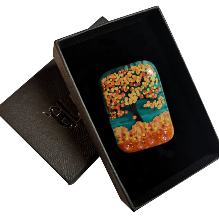 UNIQUE: Handmade Fused Glass 'Autumn Tree' Brooch.