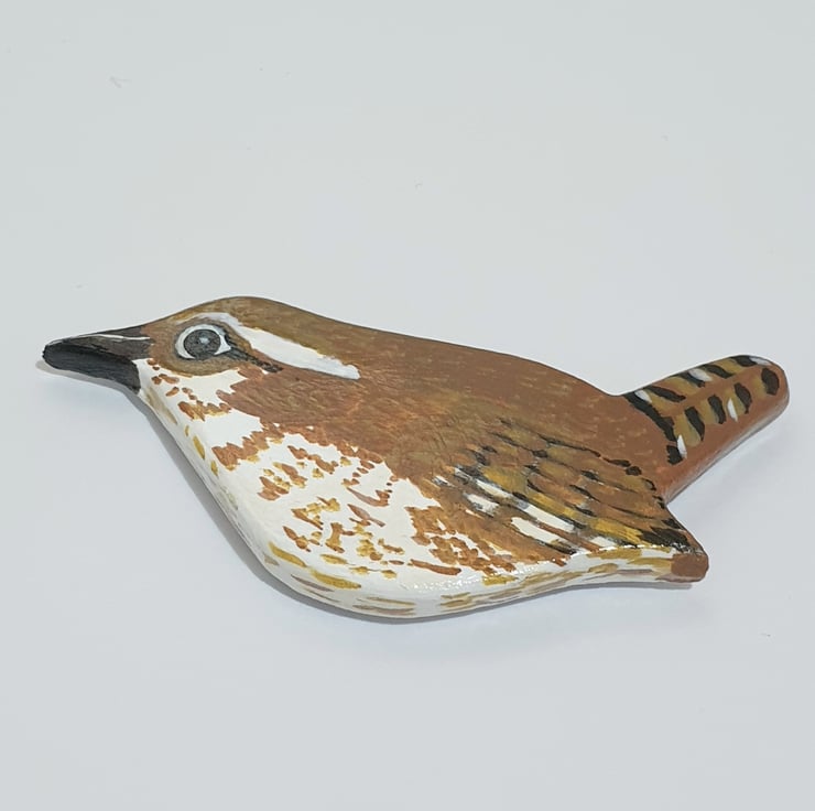 Delightful Jenny wren fridge magnet which has been lovingly created from air dry clay, handpainted with acrylics and finished with varnish. A strong strip magnet has then been added to the back. This sweet garden bird magnet would make a decorative addition to your kitchen fridge or can be attached to any surface with magnetic properties.