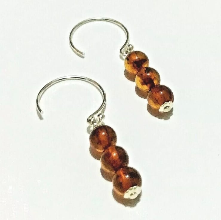 These beautiful earrings have been hand crafted using genuine 5mm Baltic Amber round shaped beads.