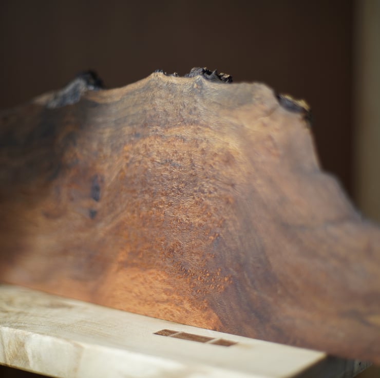I love the look of timber as you cut into it. Often the pieces that refuse to be square hold the most beautiful details. This plane has lacewood, spalting and burl all in the same piece. Reminds me of craggy rock faces in Scotland or Wales. Casts beautiful shadows when lit.