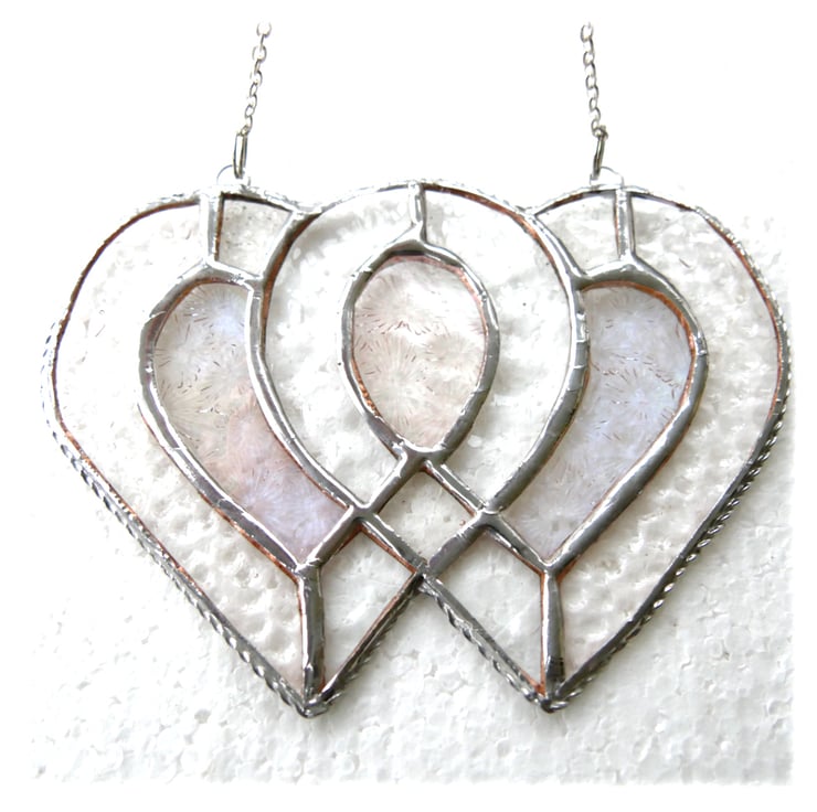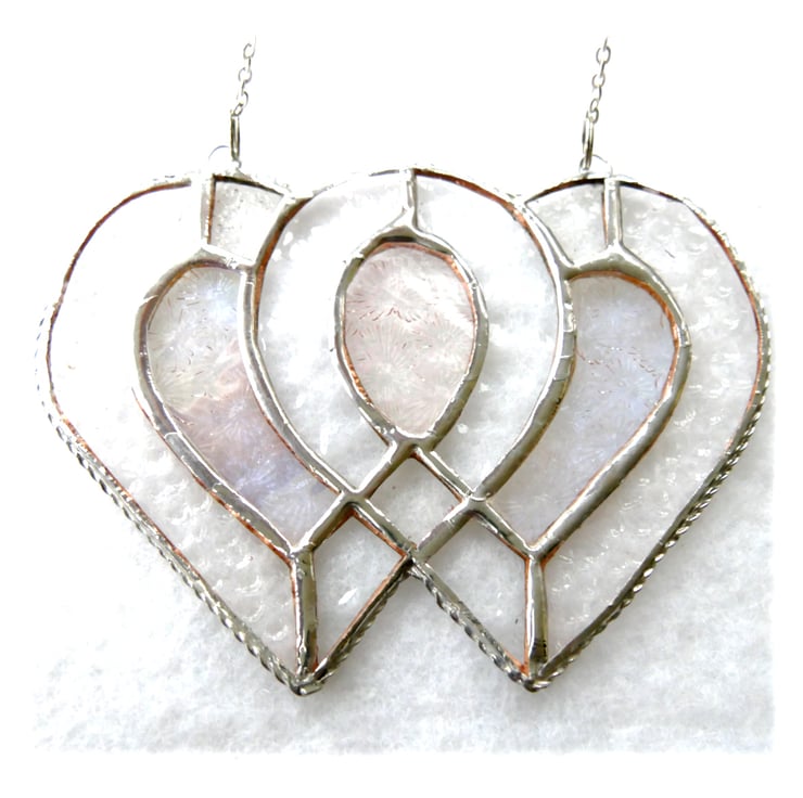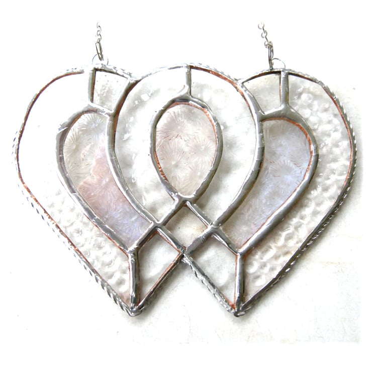 Entwined Heart Suncatcher Stained Glass Silver 25th Wedding 050