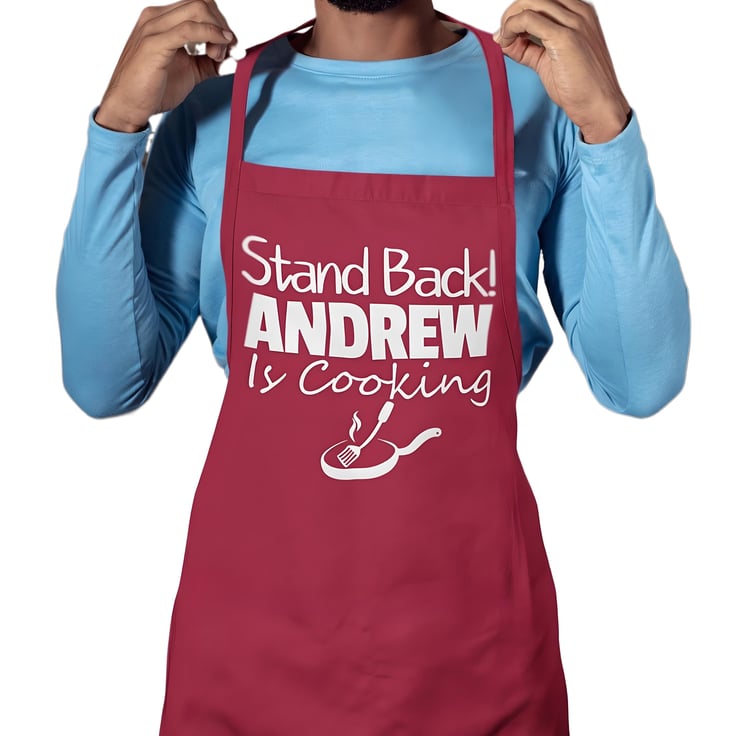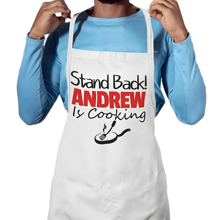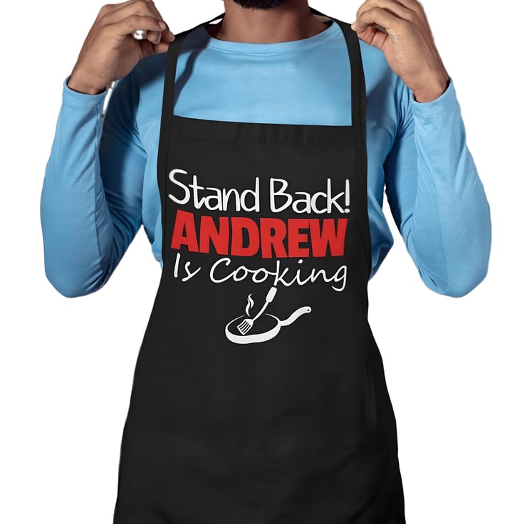 Personalised BBQ Kitchen Apron - Stand Back , personalised Name is Cooking