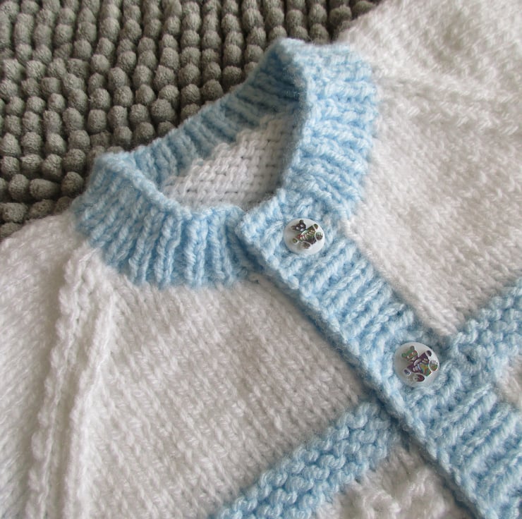 Fastening with 4 White Shank Buttons with raise foil teddy (Boys Way)