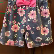 The all over poppy print is rich in colour, the dress is trimmed with gingham ribbon.