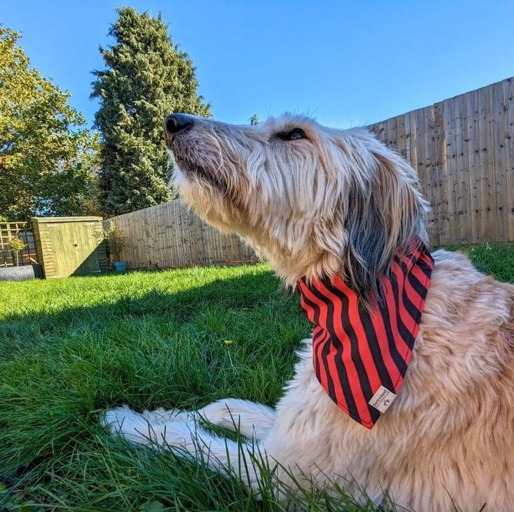 Our Elasticated dog bandanas are all handmade from pre-existing textiles and are available for dogs of all breeds and all sizes!