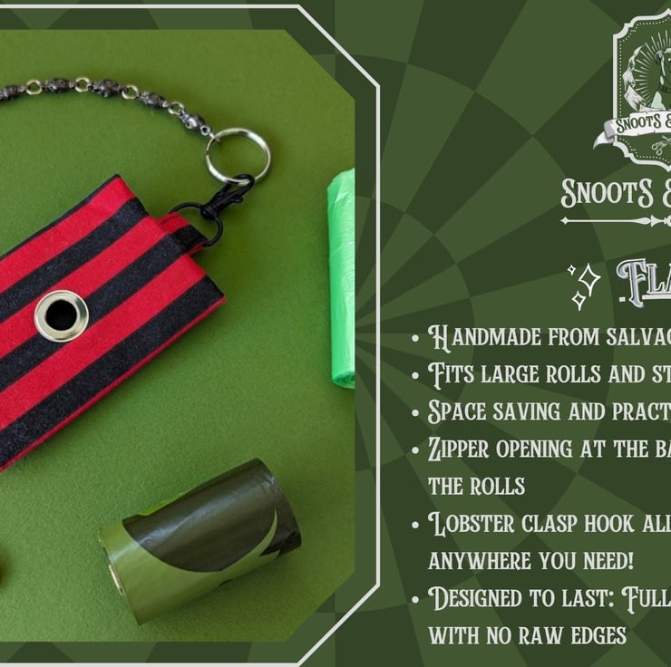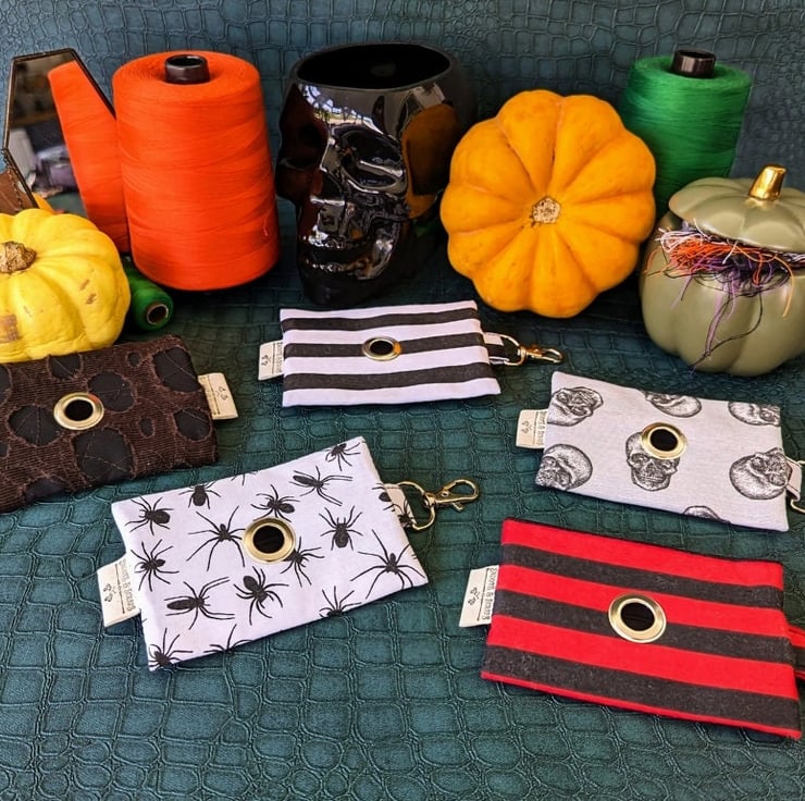 Bring the spooky to your walkies and respect the environment with our Poo Bag Holders, handmade with deadstock and salvaged fabric from landfill!
