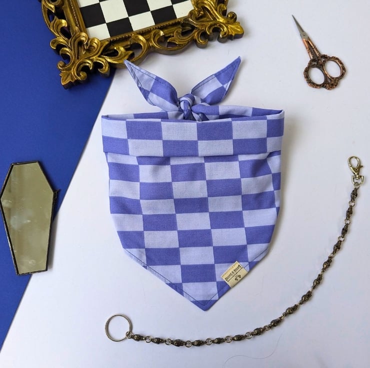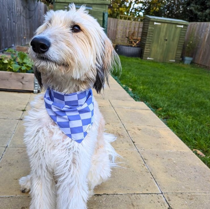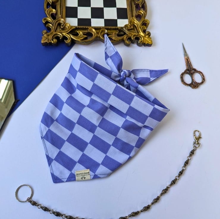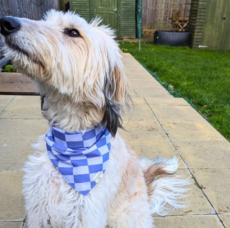 Lovingly handmade using salvaged poly-cotton in my small garden studio in Northamptonshire, this double-sided bandana is available in 5 sizes Tiny to XL - please see the photos for a handy size chart