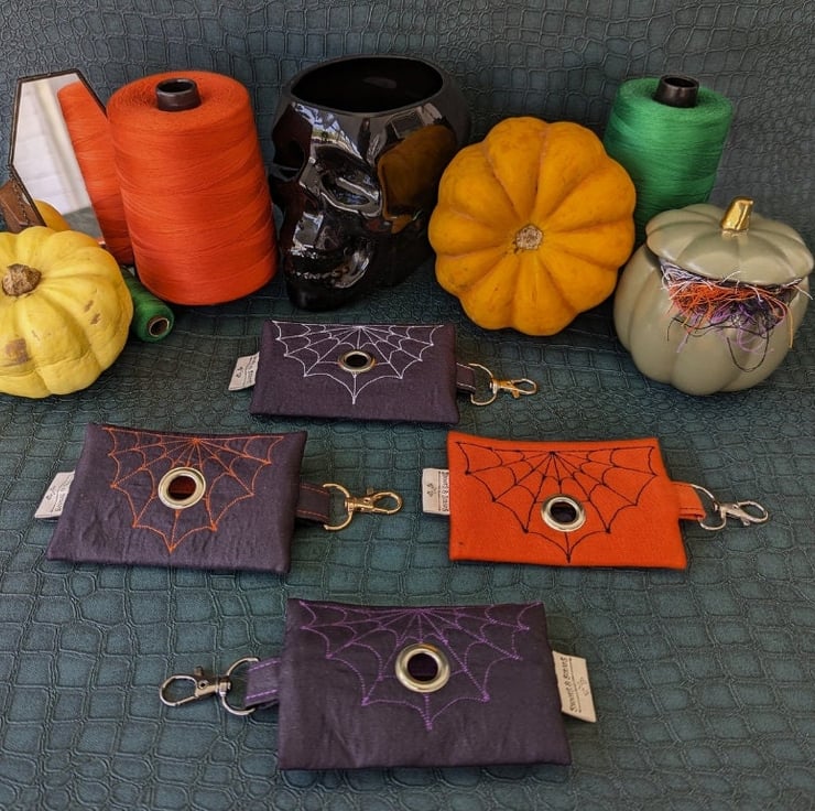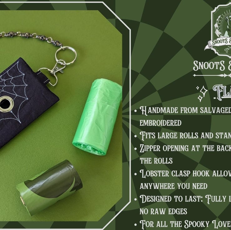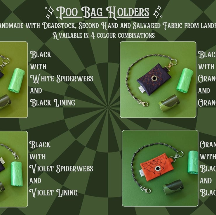 Bring the spooky to your walkies and respect the environment with our Poo Bag Holders, handmade with deadstock and salvaged fabric from landfill!