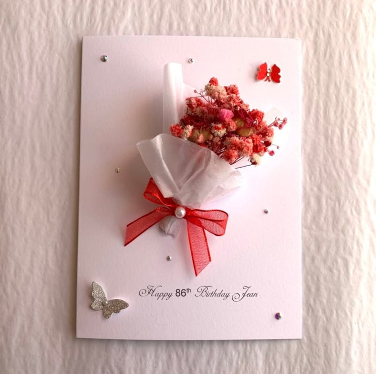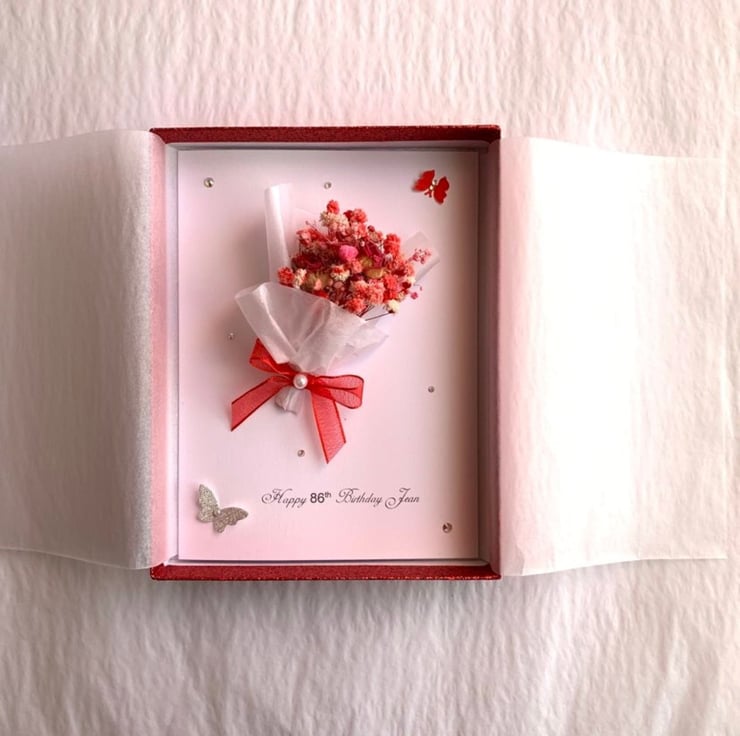 This lovely 3D Card made with preserved flowers. They are 100% natural and unique. They may be kept for 1-2 years. This original gift is designed by us, it is unique and will be pleasant for anyone. Due to the 100% handmade products, you may receive vary slightly from the product.