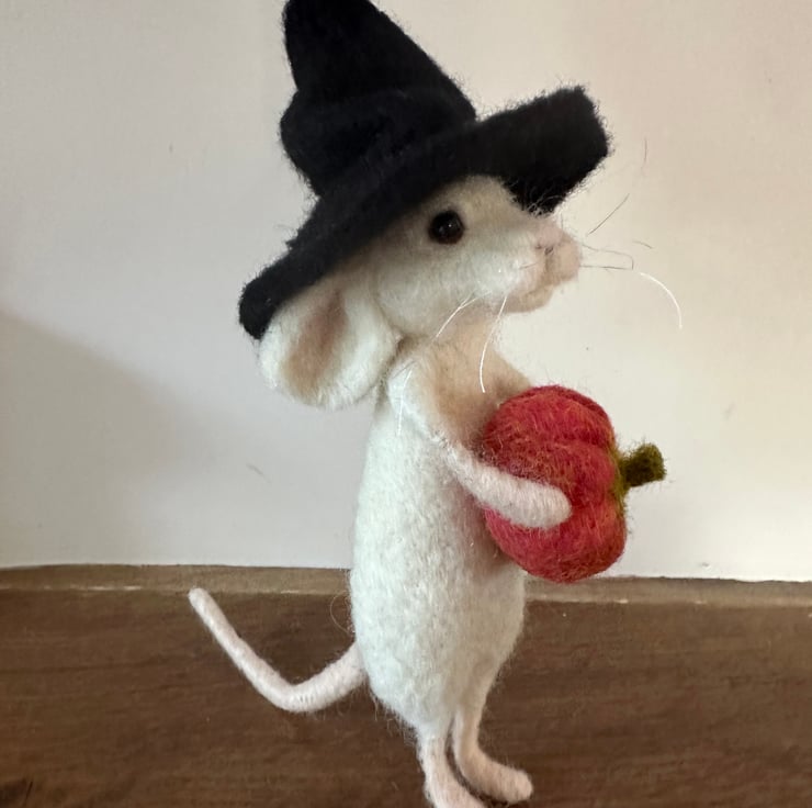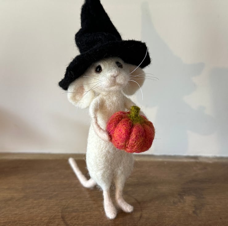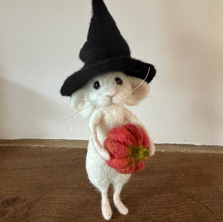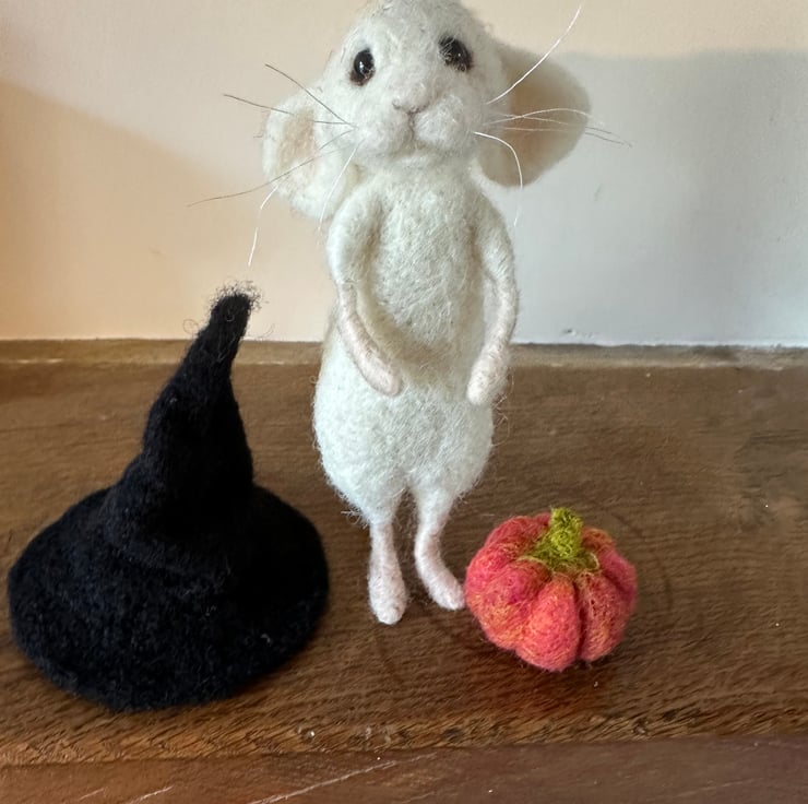 Witch hat and pumpkin are needle felted an are not permanently attached