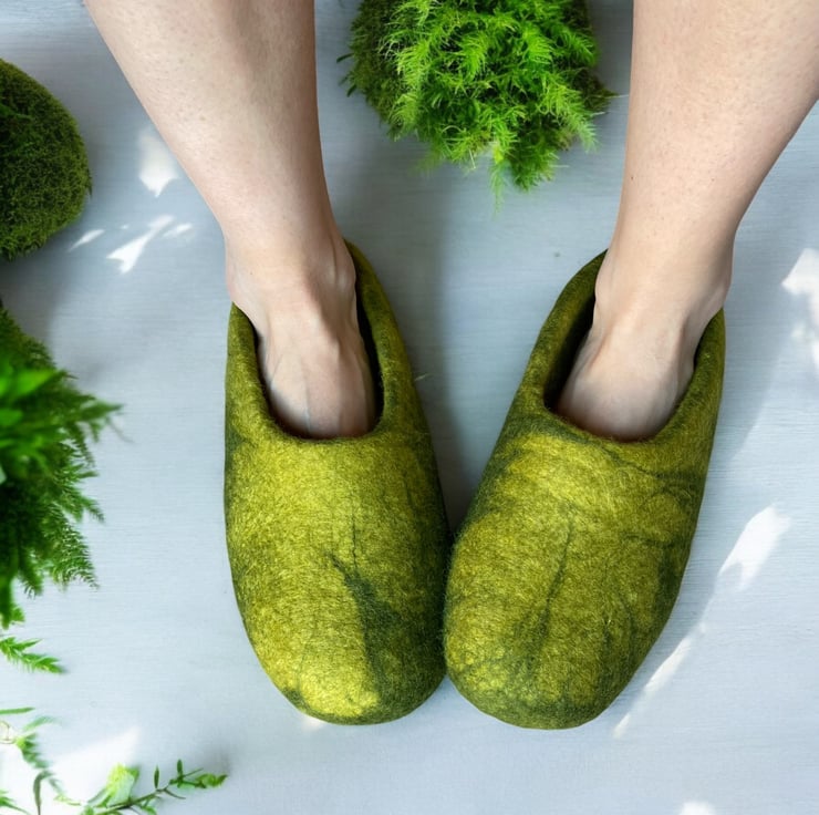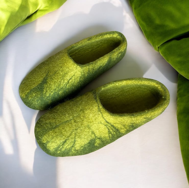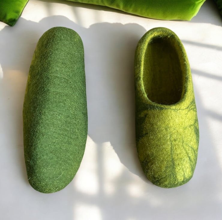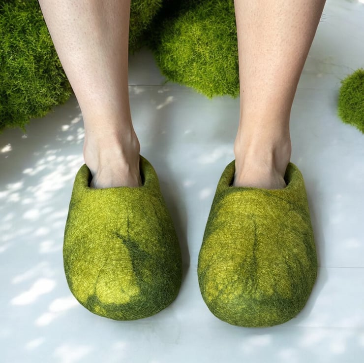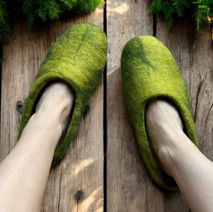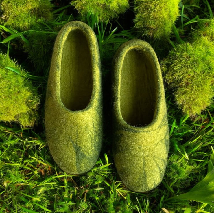 Wild Forest Hand Felted Merino Wool Slippers / Clogs